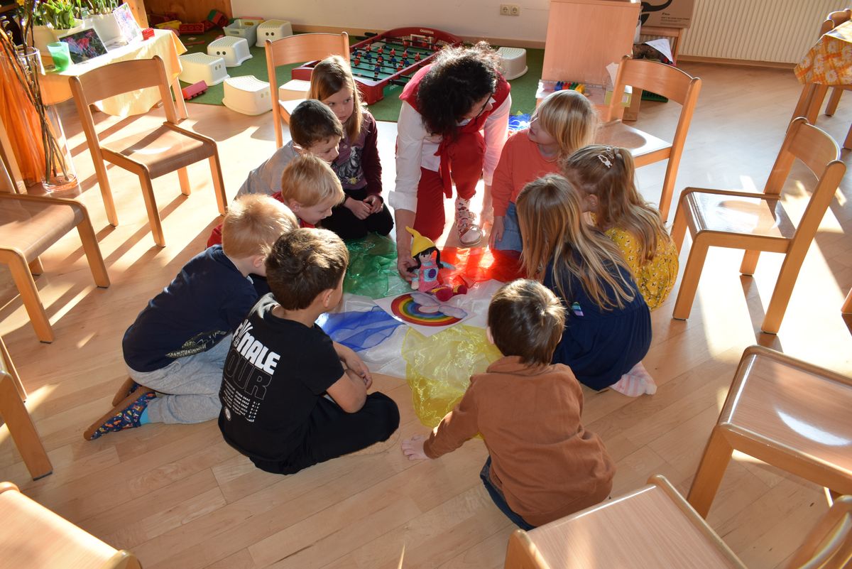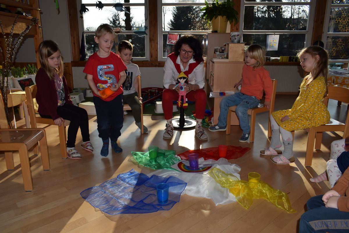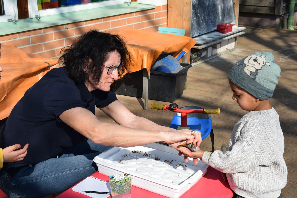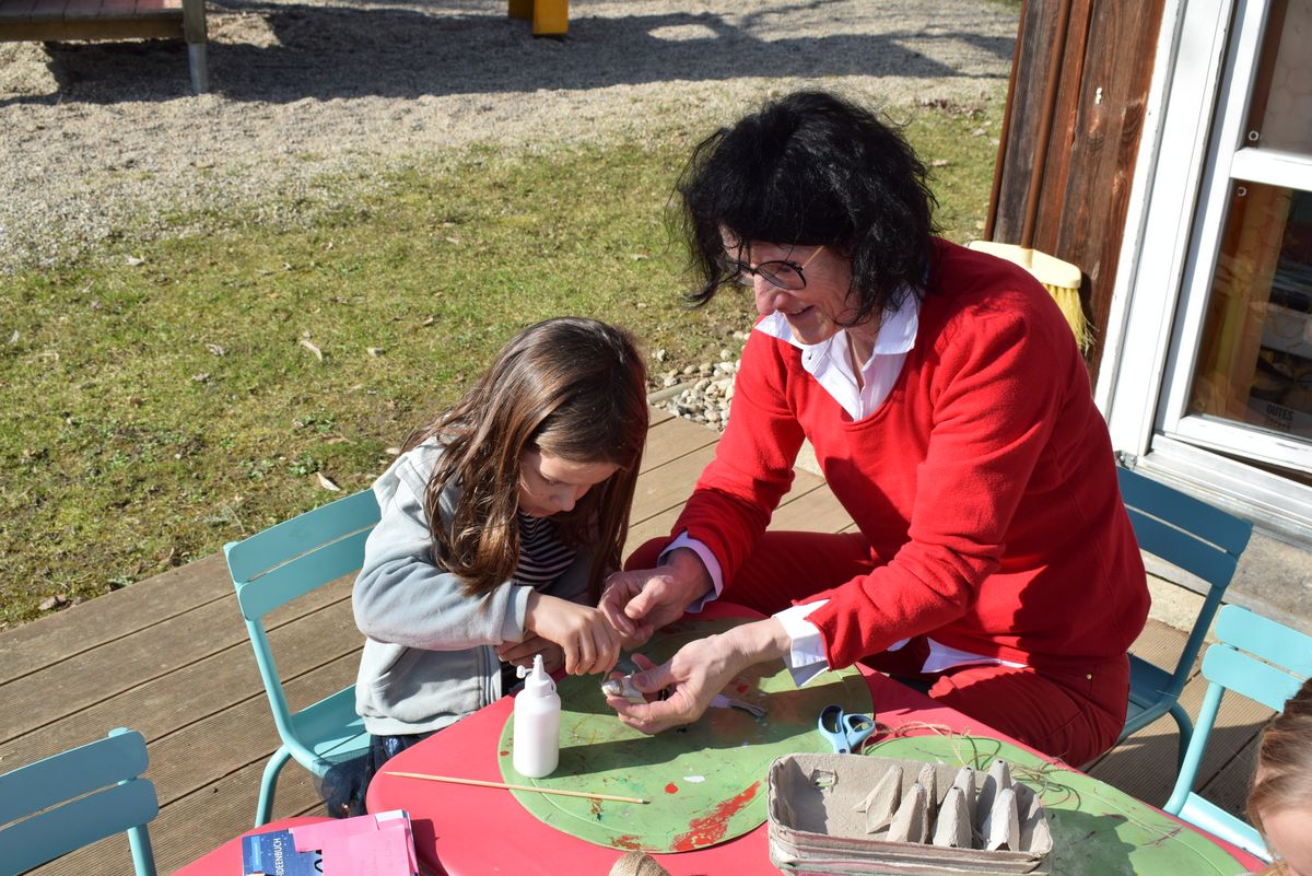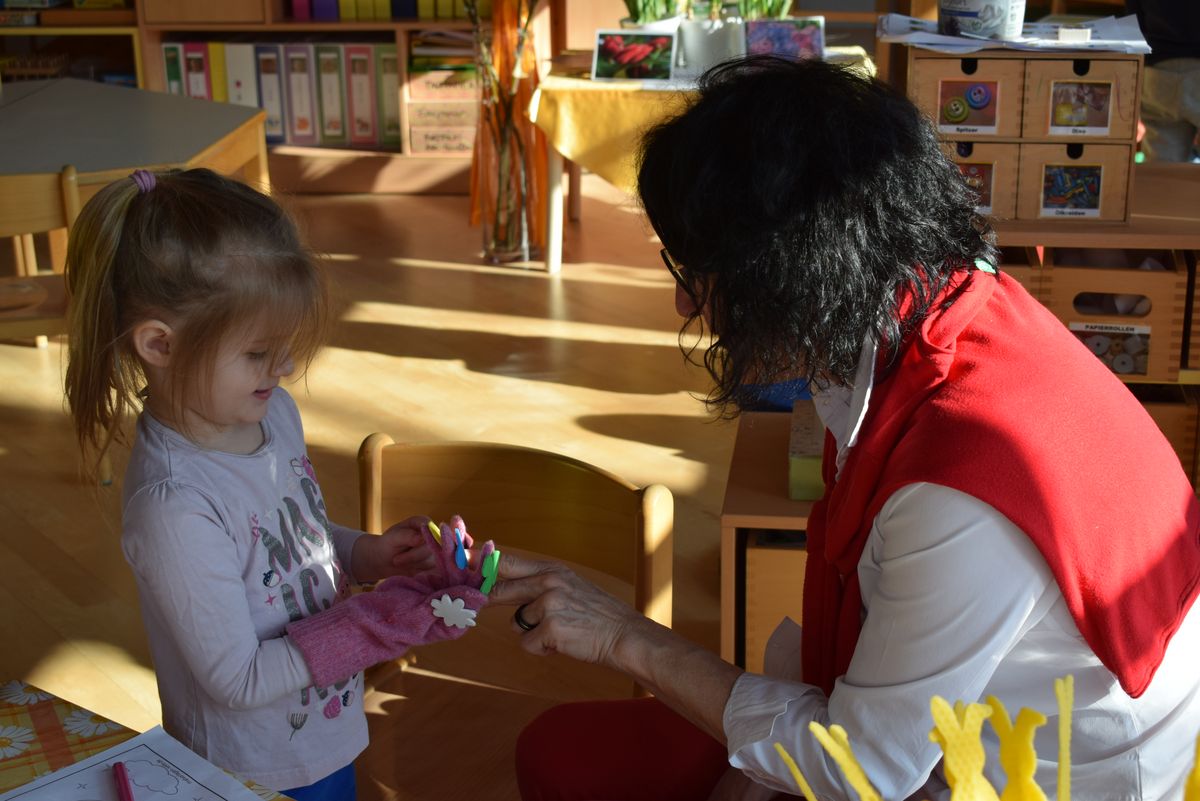 Praktikantin Manuela begleitet die Kinder mit viel Freude und gestaltet mit ihnen spannende Erlebnisse.