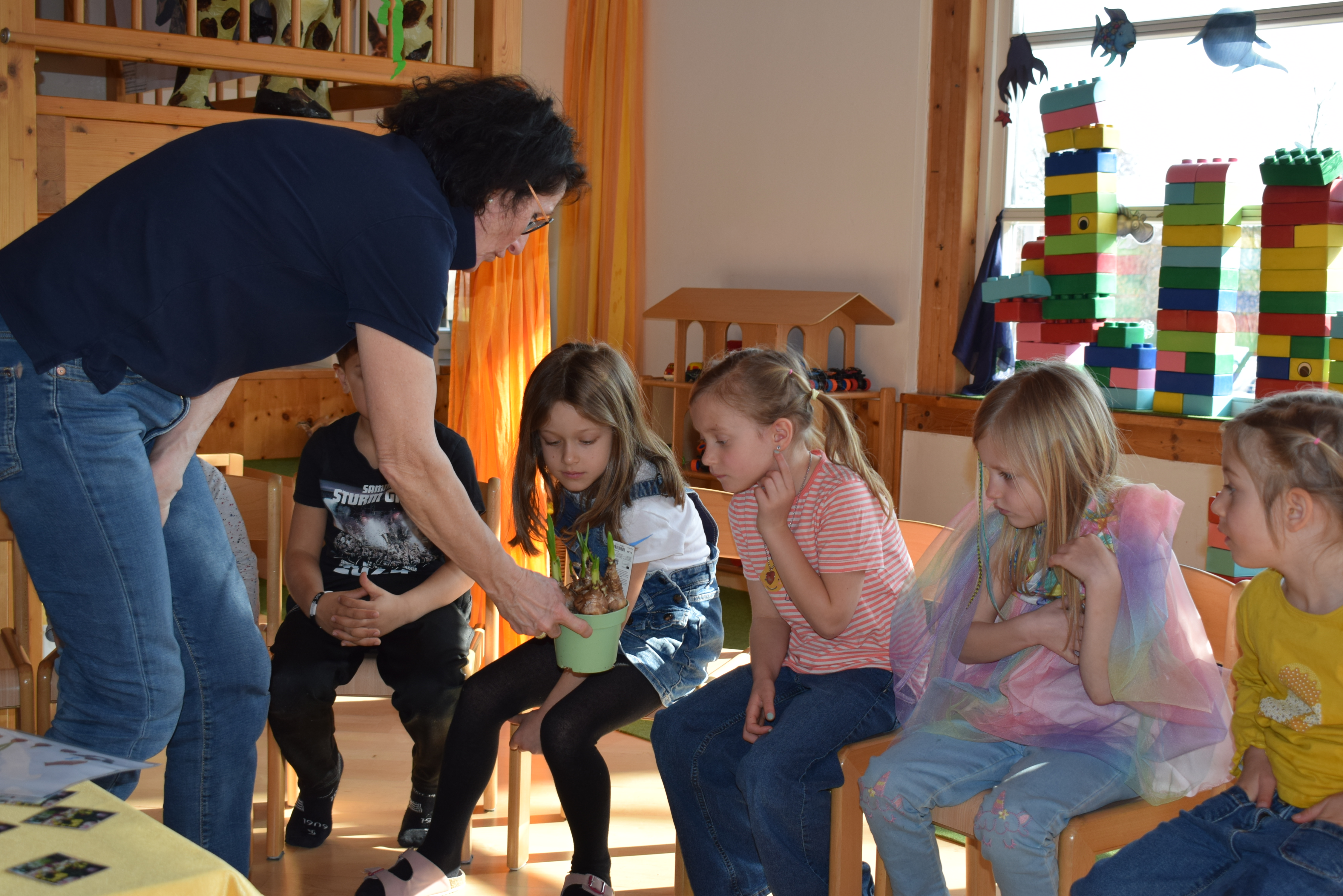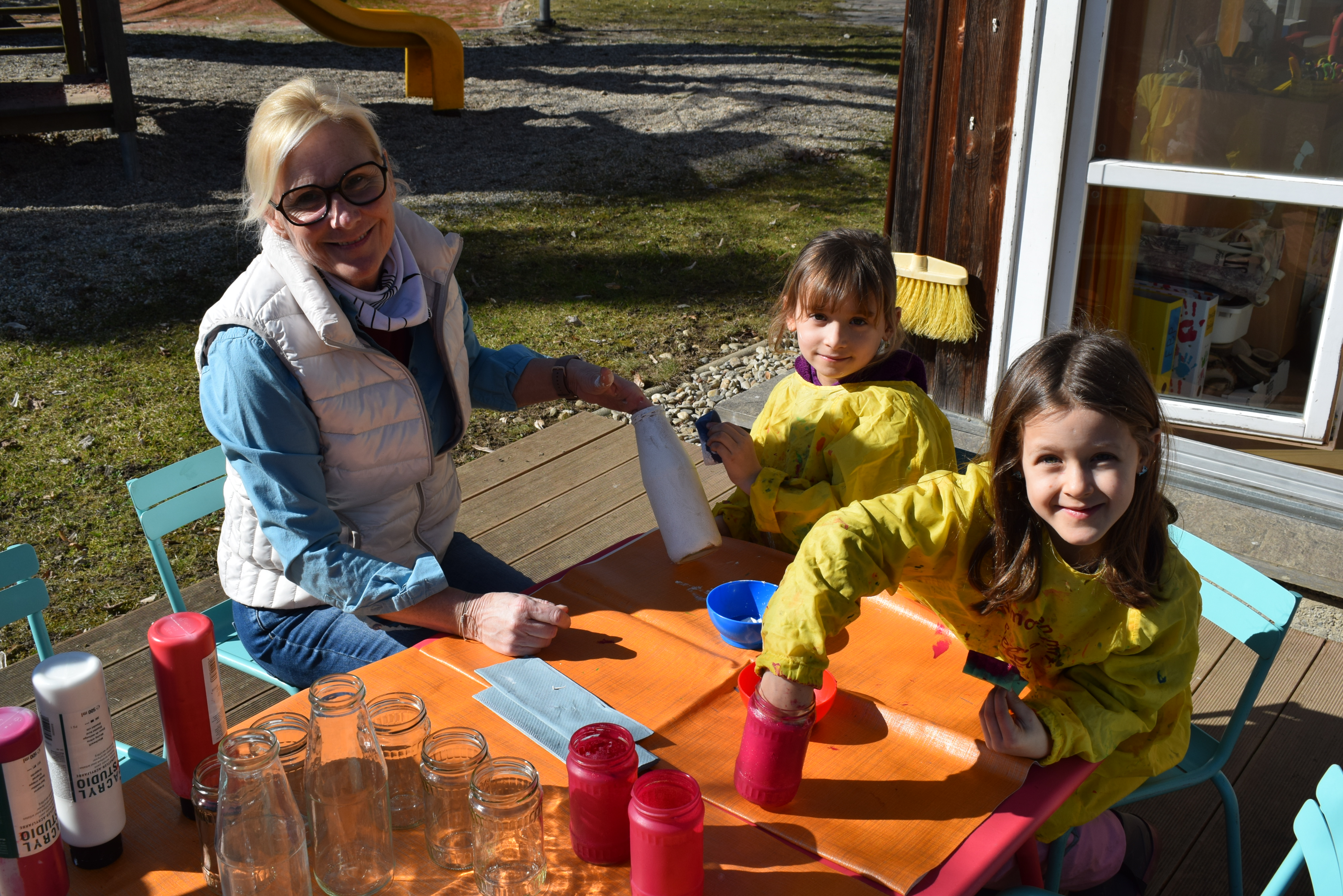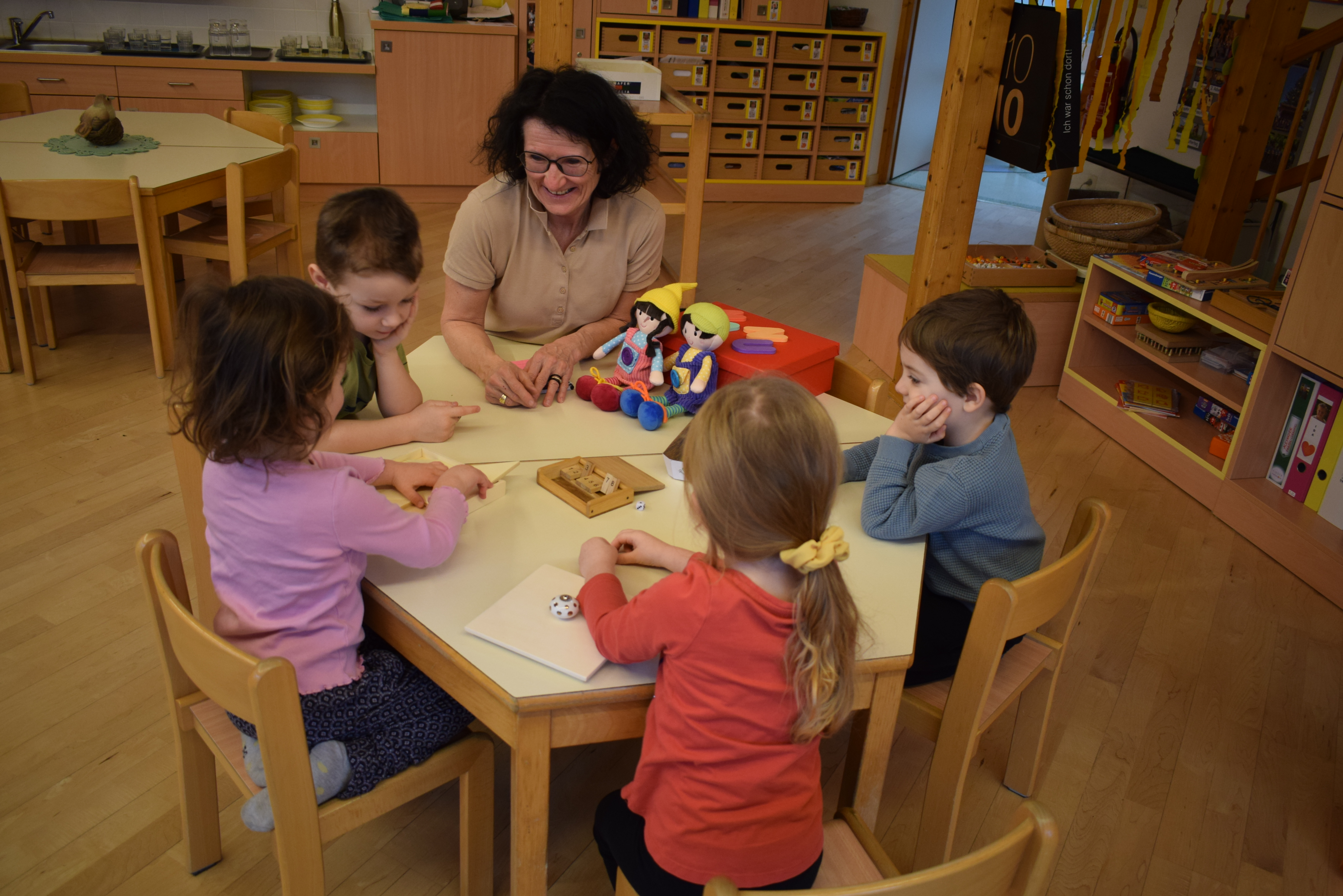 Praktikantin Manuela begleitet die Kinder mit viel Freude und gestaltet mit ihnen spannende Erlebnisse.