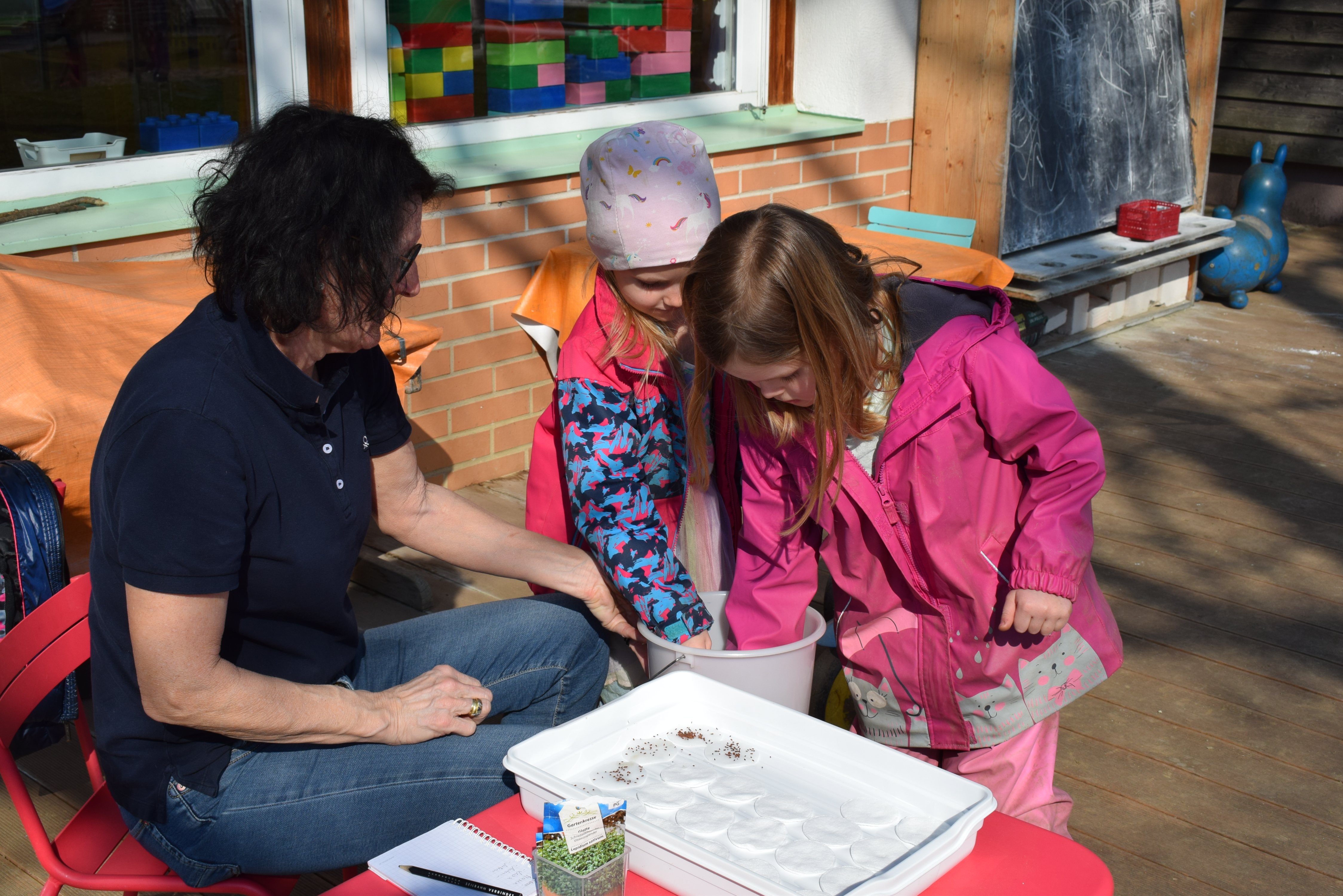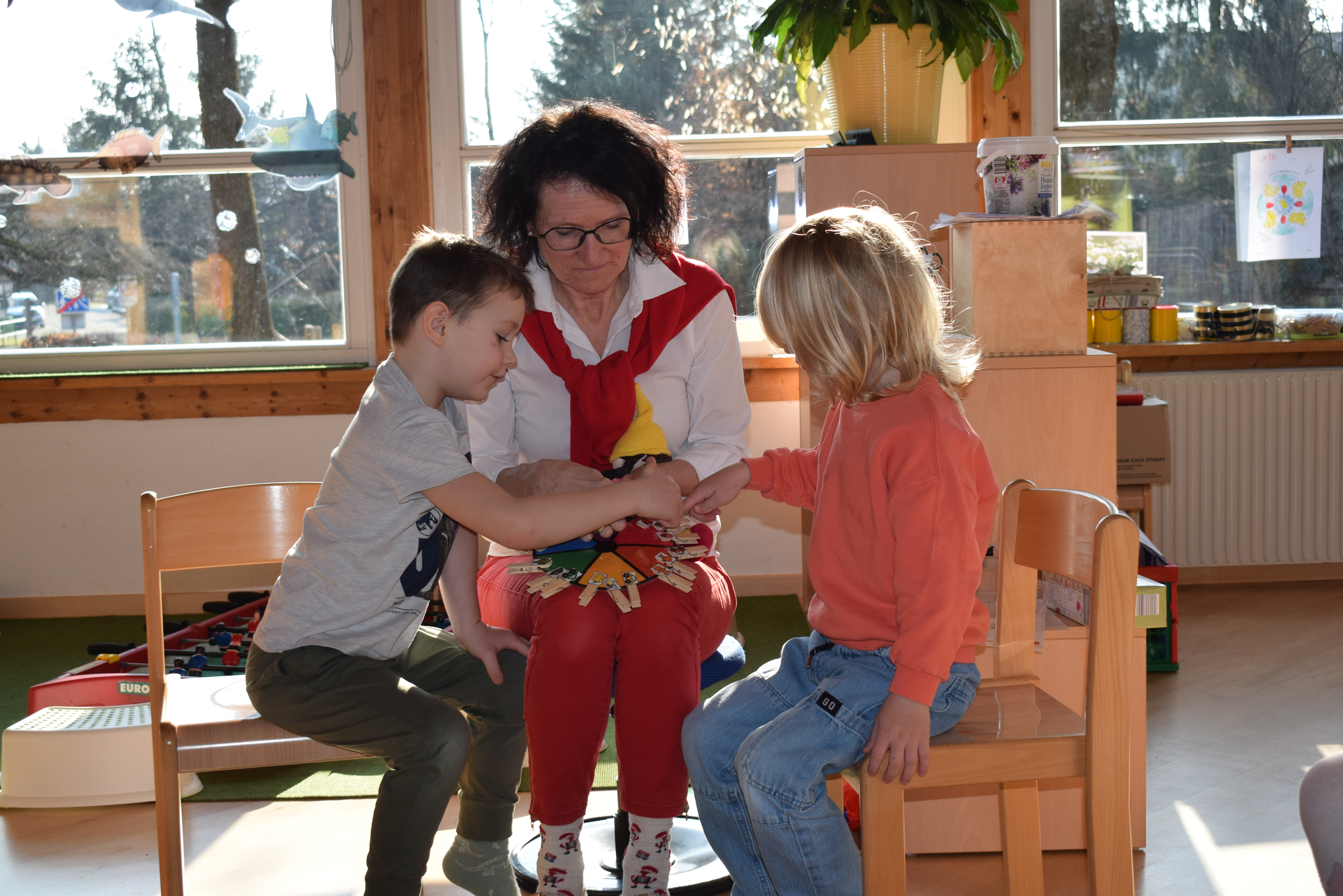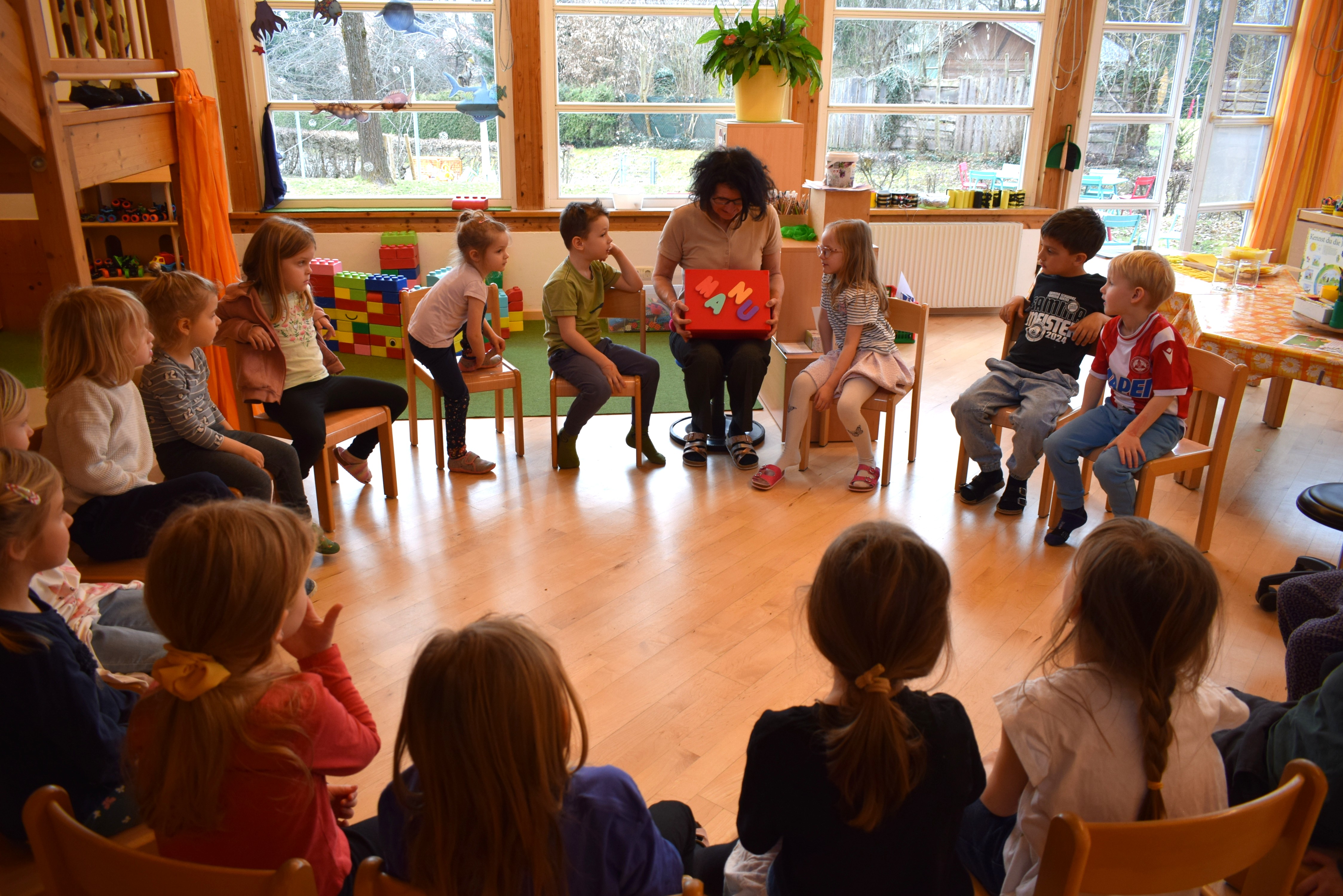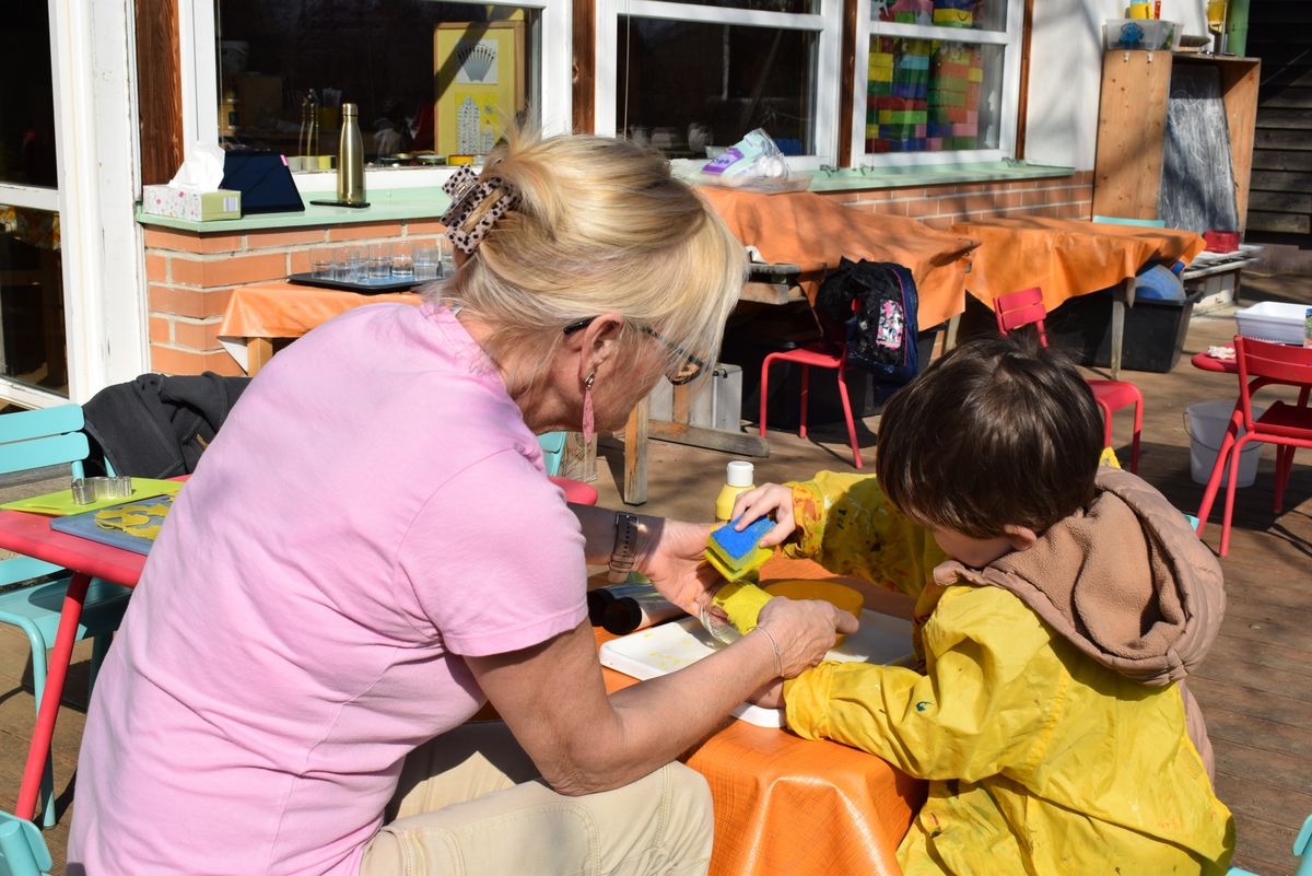 Praktikantin Manuela begleitet die Kinder mit viel Freude und gestaltet mit ihnen spannende Erlebnisse.